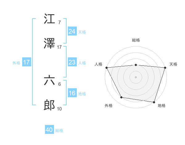 江澤 六郎さんの天格は24画の5点!