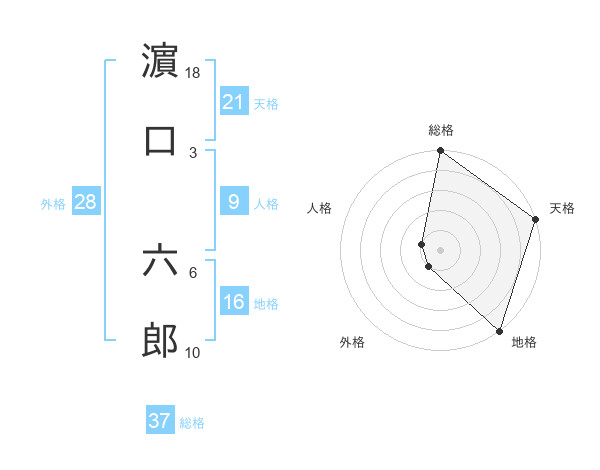 濵口 六郎さんの総格は37画の5点!