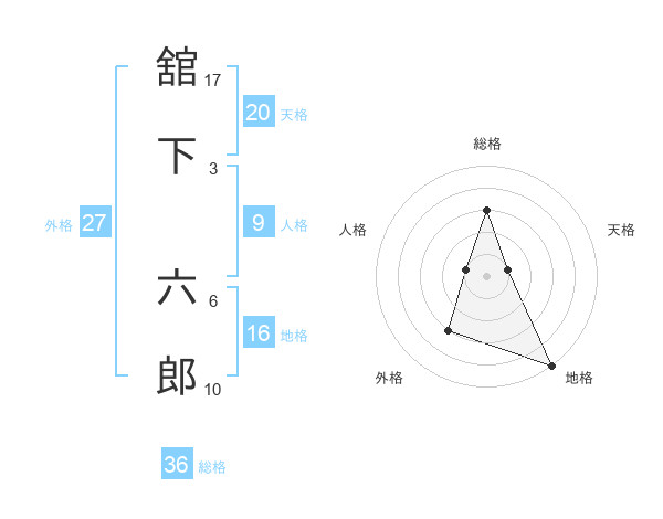 舘下 六郎さんを姓名の画数から五運を鑑定