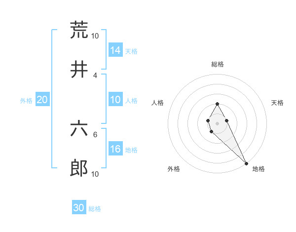 荒井 六郎さんを姓名の画数から五運を鑑定