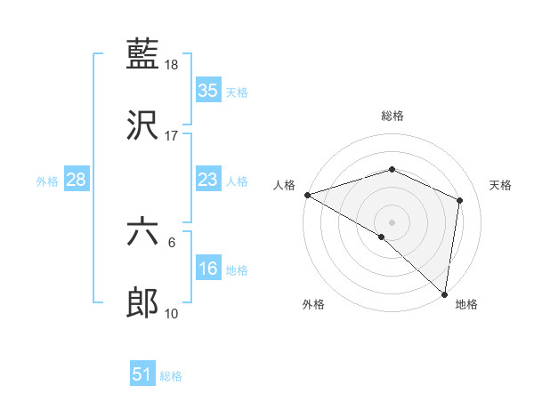 藍沢 六郎さんを姓名の画数から五運を鑑定