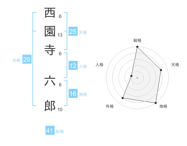 西園寺 六郎さんを姓名の画数から五運を鑑定