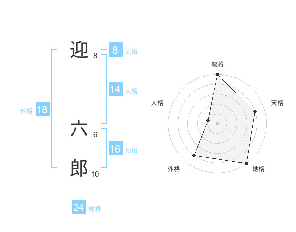 迎 六郎さんの総格は24画の5点!