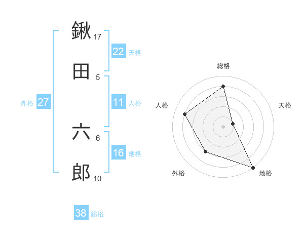 鍬田 六郎さんの天格は22画の1点!