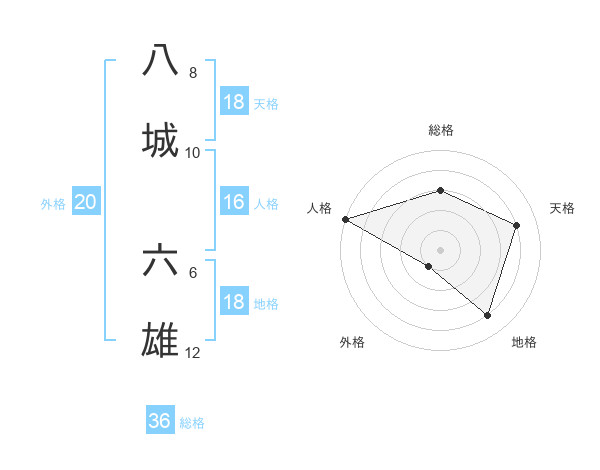 八城 六雄さんの天格は18画の4点!