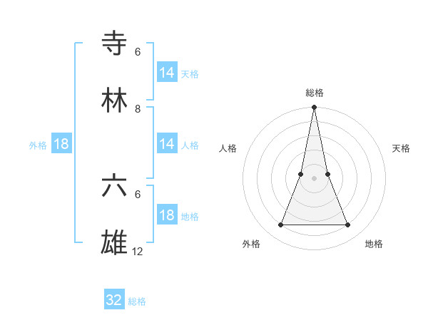 寺林 六雄さんの総格は32画の5点!