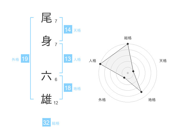 尾身 六雄さんの天格は14画の1点!
