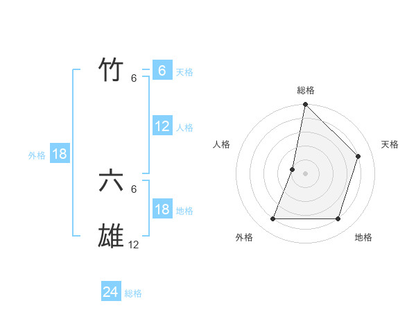 竹 六雄さんの総格は24画の5点!
