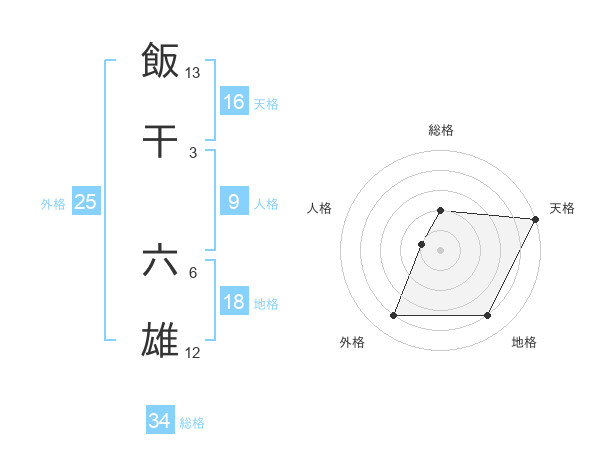 飯干 六雄さんを姓名の画数から五運を鑑定