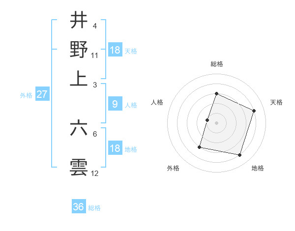 井野上 六雲さんを姓名の画数から五運を鑑定