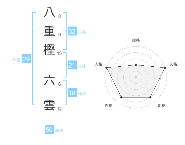 八重樫 六雲さんを姓名の画数から五運を鑑定
