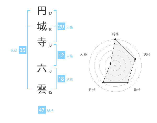 円城寺 六雲さんの総格は47画の5点!