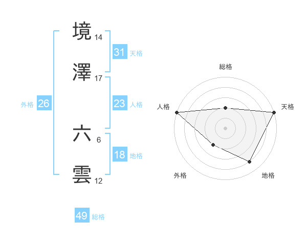 境澤 六雲さんを姓名の画数から五運を鑑定
