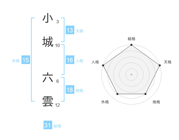 小城 六雲さんの総格は31画の5点!