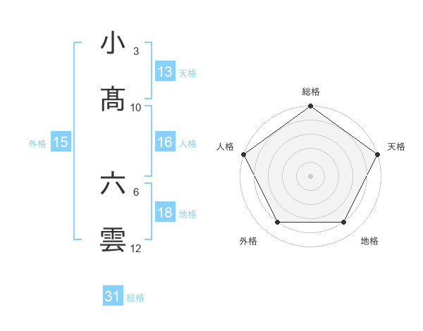 小髙 六雲さんの総格は31画の5点!