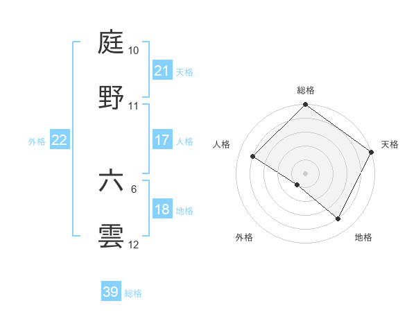 庭野 六雲さんを姓名の画数から五運を鑑定