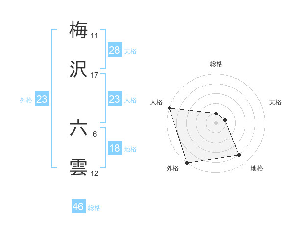 梅沢 六雲さんを姓名の画数から五運を鑑定