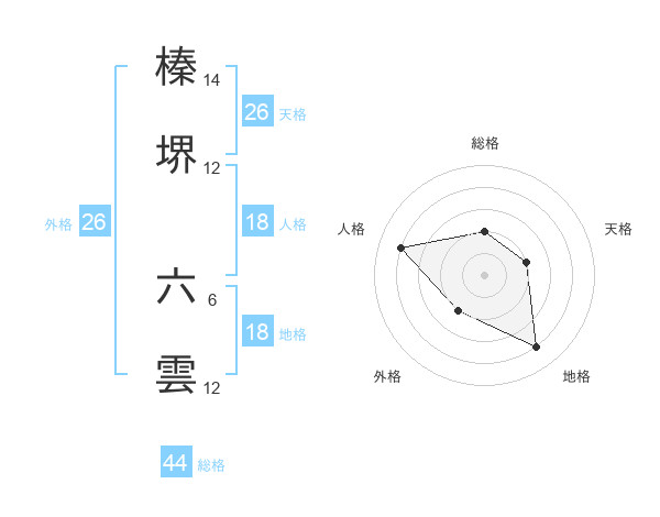 榛堺 六雲さんの総格は44画の2点!