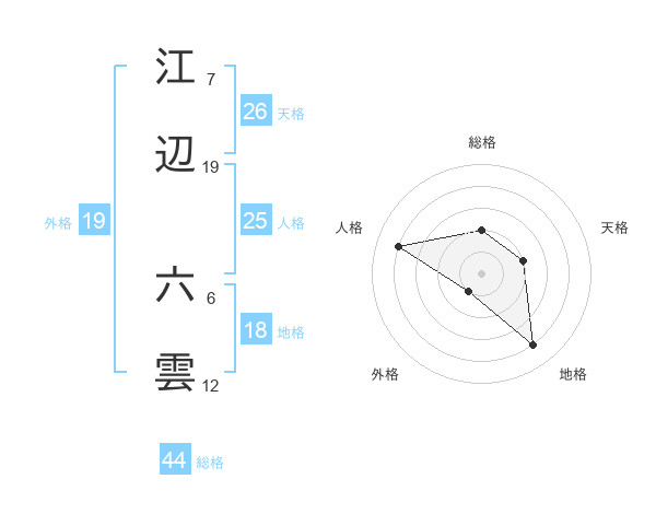 江辺 六雲さんの総格は44画の2点!
