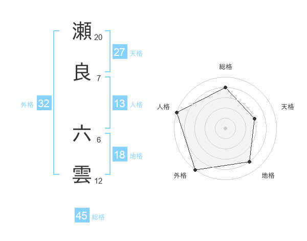 瀬良 六雲さんを姓名の画数から五運を鑑定