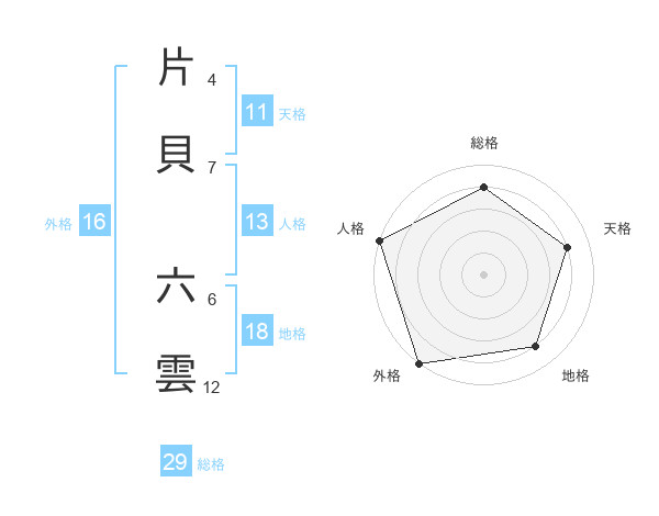 片貝 六雲さんの総格は29画の4点!