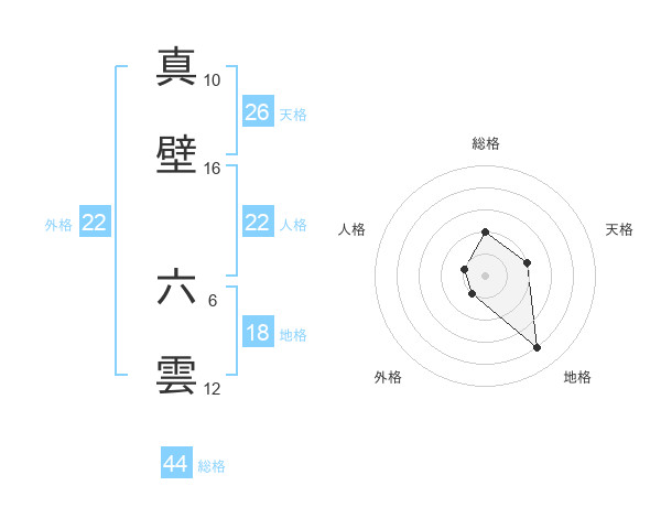 真壁 六雲さんの総格は44画の2点!