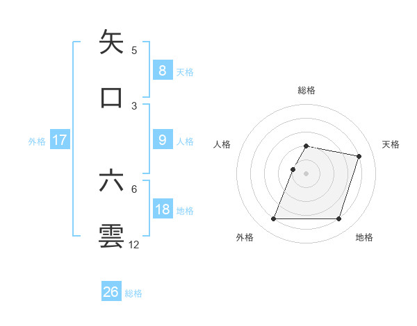 矢口 六雲さんを姓名の画数から五運を鑑定