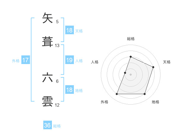 矢葺 六雲さんの総格は36画の3点!