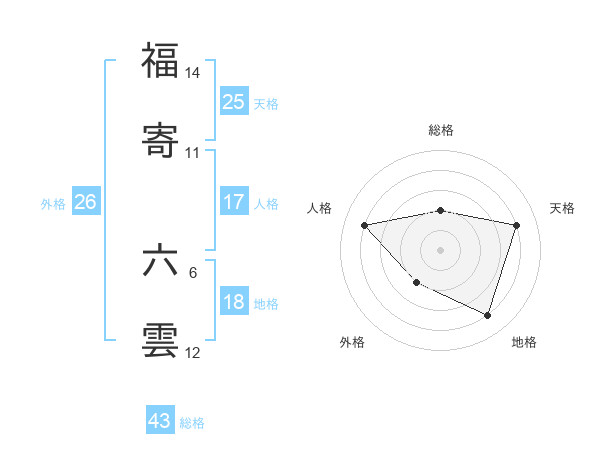 福寄 六雲さんの総格は43画の2点!