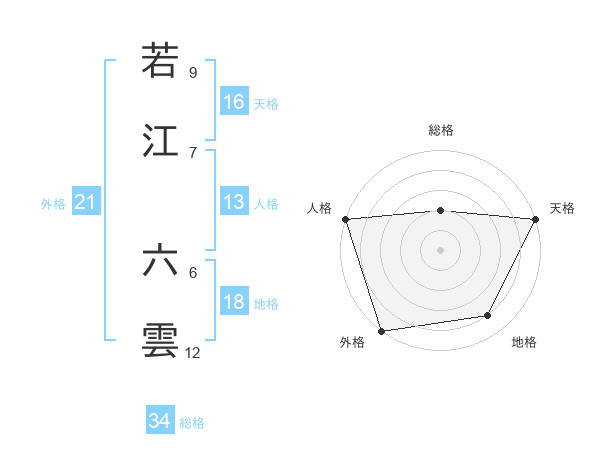 若江 六雲さんの総格は34画の2点!
