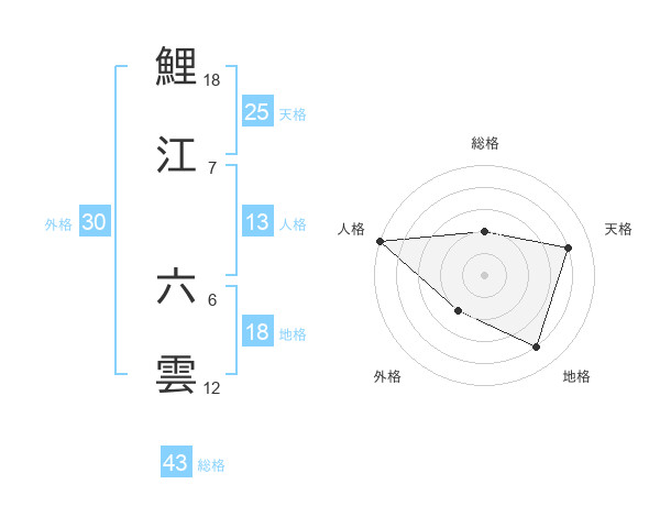 鯉江 六雲さんの総格は43画の2点!