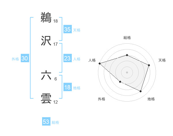 鵜沢 六雲さんの総格は53画の3点!