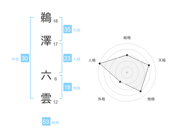 鵜澤 六雲さんの総格は53画の3点!