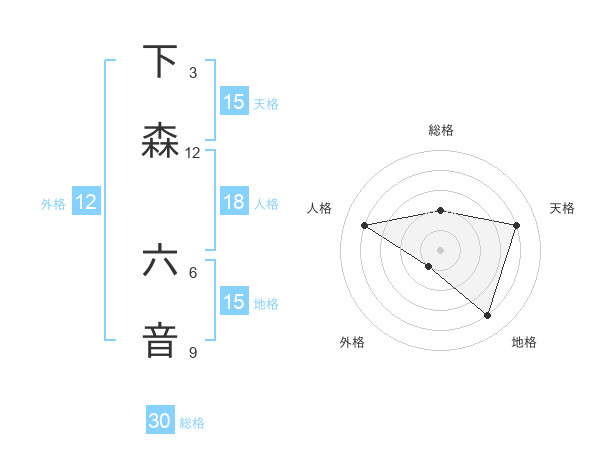 下森 六音さんの天格は15画の4点!