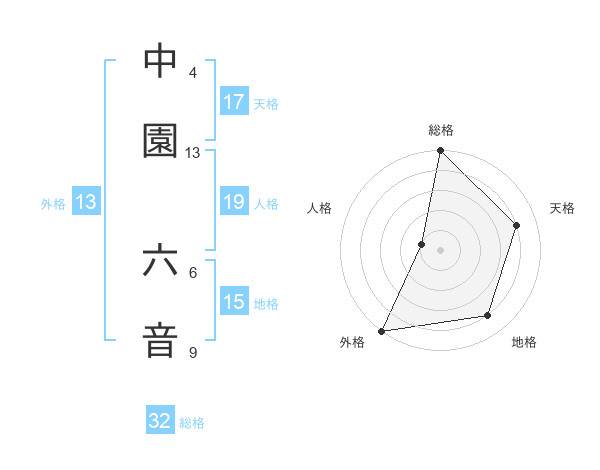 中園 六音さんの外格は13画の5点!