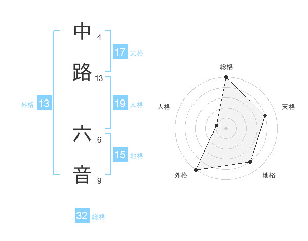 中路 六音さんの外格は13画の5点!