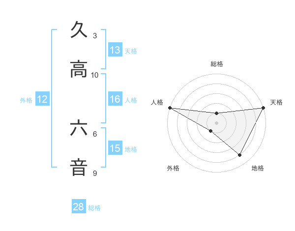久高 六音さんの天格は13画の5点!