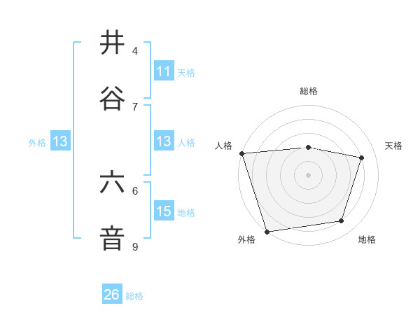井谷 六音さんの外格は13画の5点!