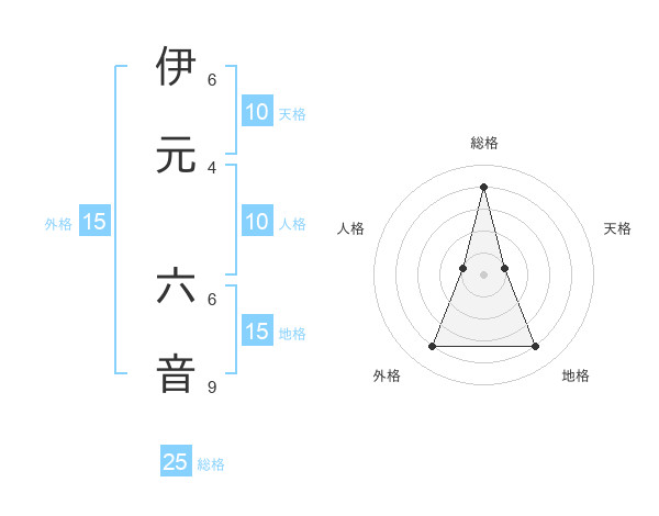 伊元 六音さんの総格は25画の4点!