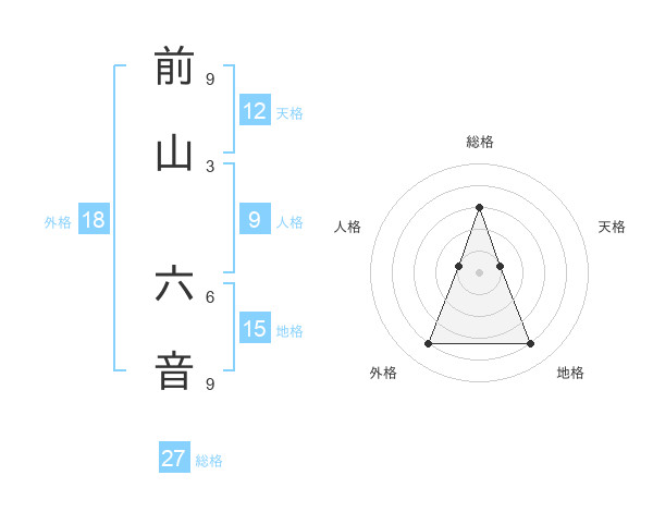前山 六音さんの総格は27画の3点!