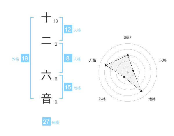 十二 六音さんの外格は19画の1点!