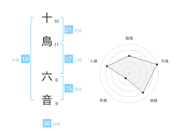十鳥 六音さんの外格は19画の1点!