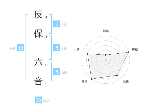 反保 六音さんの外格は13画の5点!