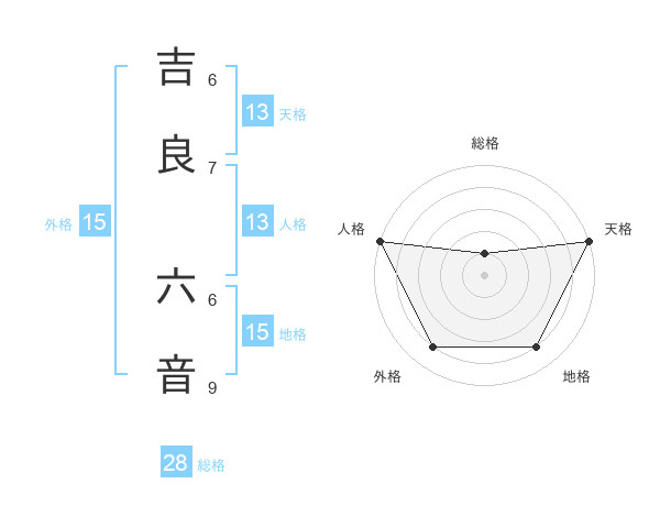 吉良 六音さんの天格は13画の5点!