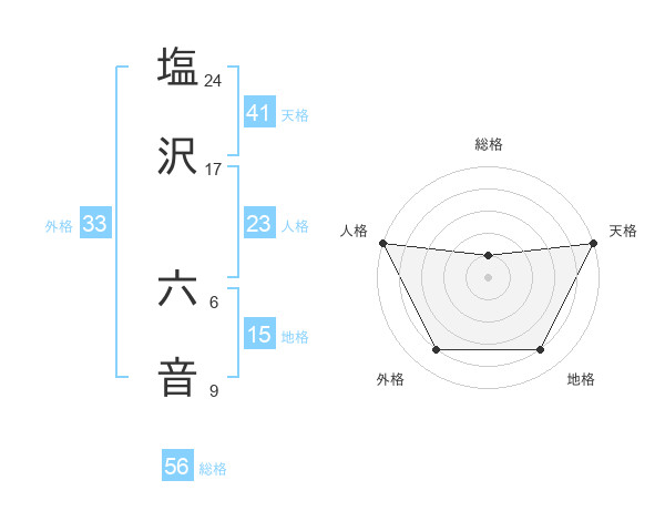 塩沢 六音さんの外格は33画の4点!