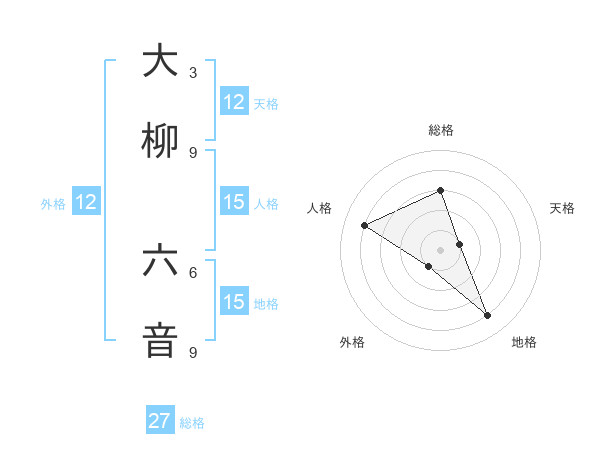 大柳 六音さんの天格は12画の1点!