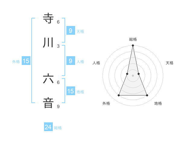 寺川 六音さんの総格は24画の5点!