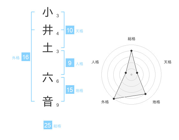 小井土 六音さんの総格は25画の4点!