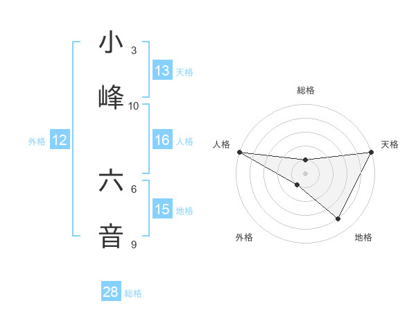 小峰 六音さんの天格は13画の5点!