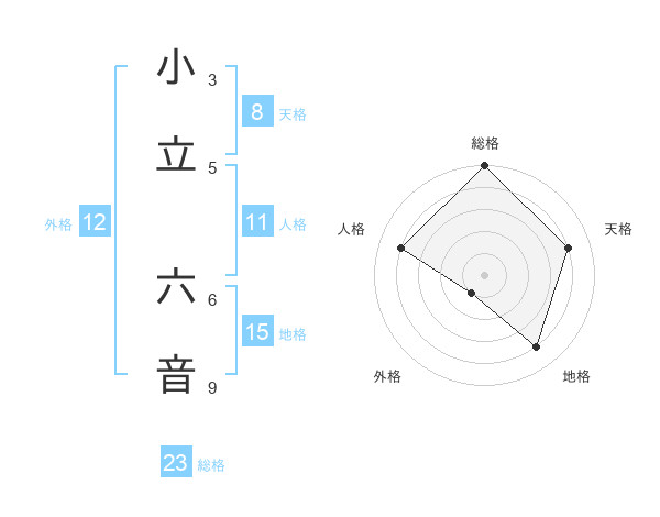 小立 六音さんの総格は23画の5点!